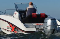 Badstege Lanterna för & akter Hydraulstyrning Fast tank 61 liter Soffa för 2 personer Brandsläckare Styrpulpet med ruta & båge Syrafasta räcken & pollare Regndränerad innerline Handlänspump Elektrisk länspump Pulpetöverdrag Låsögla klass 3 Syrafast plåt i akterspegeln